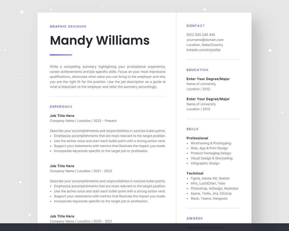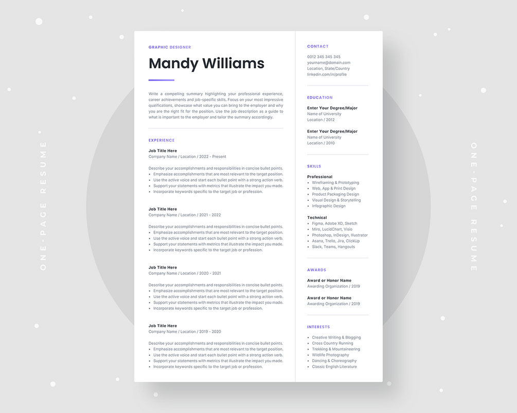 • 1-page resume template